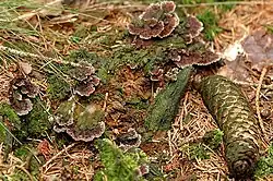 Cette forme se retrouve typiquement chez les Hymenochaetales et les Thelephorales. La plupart sont soit saprotrophe, soit mycorhiziens comme Thelephora terrestris[1].