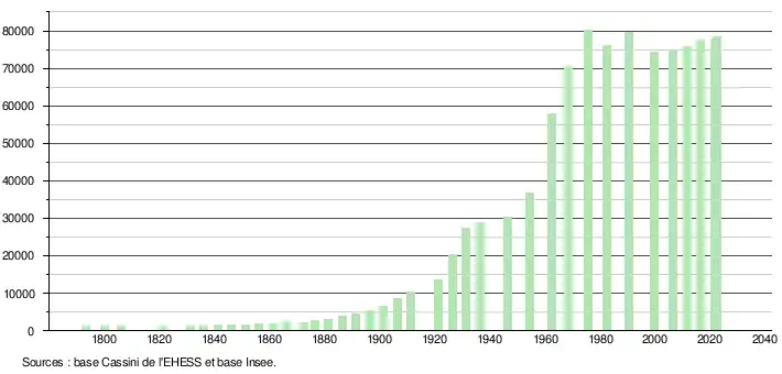 - ↑ Fiches Insee - Populations de référence de la commune pour les années 2006, 2007, 2008, 2009, 2010, 2011, 2012, 2013, 2014, 2015, 2016, 2017, 2018, 2019, 2020, 2021 et 2022.