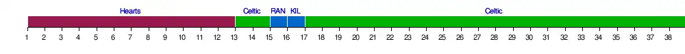 | Heart of Midlothian | 2015 | 6 | Tynecastle Stadium | 20 099 | Édimbourg |