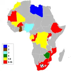 - Zone Sud : deux qualifiés parmi neuf équipes en trois tours, plus l'Afrique du Sud, pays organisateur qualifié d'office.