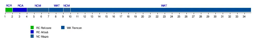 | WA Tlemcen | 0-2 | 0-2 | 0-2 | 0-1 | 1-4 | 0-1 | 2-3 | 0-2 | 1-0 | 2-2 | 1-0 | 0-2 | 1-3 | 2-1 | 0-0 | 0-3 | 0-3 | |