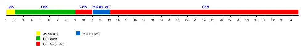 | US Biskra | 2-1 | 0-1 | 2-0 | 1-1 | 2-0 | 0-1 | 2-1 | 0-0 | 2-2 | 2-1 | 1-0 | 2-1 | 1-0 | 1-0 | 1-0 | 0-0 | 0-0 | |