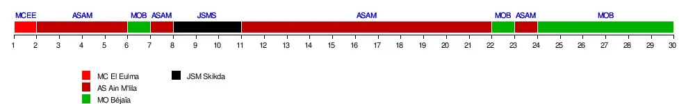 | MC El Eulma | 2-0 | 0-1 | 4-1 | 1-0 | 1-0 | 2-2 | 1-0 | 2-1 | 4-1 | 2-1 | 2-1 | 0-1 | 1-1 | 1-1 | 0-0 | |