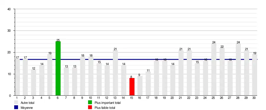 Le total des buts inscrits durant toute la saison est de 482 buts, soit une moyenne de 16,06 buts par journée.