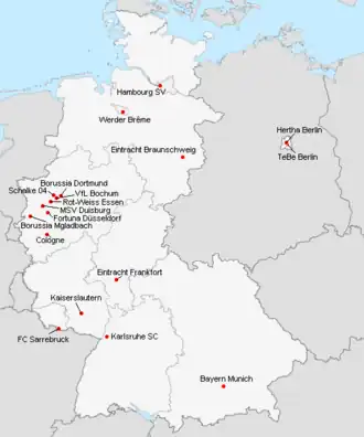 | Borussia Mönchengladbach | Bökelbergstadion | 32 000 | Mönchengladbach |