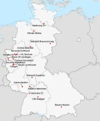 | VfL Bochum | Ruhrstadion | 31 328 | Bochum |