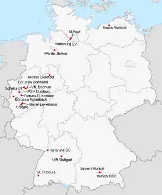 | VfL Bochum | Ruhrstadion | 31 328 | Bochum |