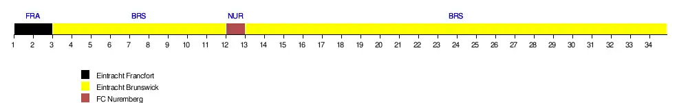 | Eintracht Brunswick | 13 | 15 | 18 | 18 | 18 | 18 | 18 | 18 | 18 | 18 | 18 | 17 | 18 | 18 | 18 | 18 | 18 | 18 | 18 | 18 | 18 | 18 | 18 | 18 | 18 | 18 | 18 | 18 | 18 | 18 | 18 | 18 | 18 | 18 | 32 | |