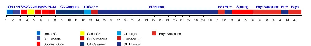 | SD Huesca | 0-0 | 1-1 | 2-2 | 2-1 | 1-0 | 3-1 | 1-0 | 0-1 | 2-1 | 2-0 | 3-0 | 2-1 | 1-0 | 1-1 | 2-1 | 1-1 | 3-1 | 0-0 | 0-2 | 3-0 | 1-0 | |
