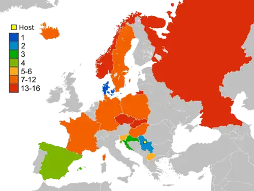 - ↑ (en) « Statistiques cumulées de la Croatie » [PDF], sur Analyses officielles de l'EHF, Fédération européenne de handball, (consulté le ).