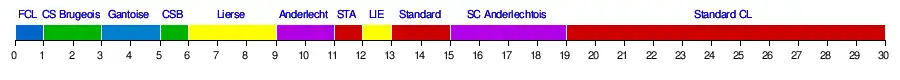 - ↑ Au niveau footballistique, la province de Brabant est toujours unitaire malgré sa partition territoriale en 1995.
