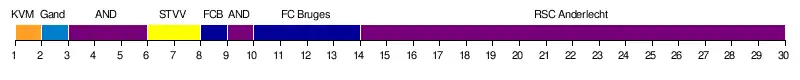 | R. SC Anderlecht | 1-0 | 3-2 | 3-2 | 2-0 | 1-1 | 2-0 | 1-0 | 2-0 | 2-0 | FFT | 3-1 | 1-2 | 1-1 | 3-0 | 2-1 | |