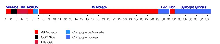 | AS Monaco FC | 3-3 | 1-1 | 2-0 | 2-0 | 3-1 | 4-2 | 2-0 | 0-1 | 3-0 | 1-0 | 1-0 | 4-0 | 0-1 | 1-1 | 1-1 | 1-4 | 1-1 | 2-0 | 3-0 | |