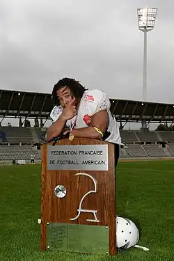 - Trophée Laurent Plegelatte (meilleur joueur Français) : Stephen Yepmo (running back, Black Panthers).