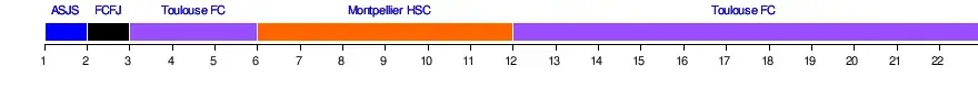 | Toulouse FC | 4 | 2 | 1 | 1 | 1 | 2 | 2 | 2 | 3 | 2 | 2 | 1 | 1 | 1 | 1 | 1 | 1 | 1 | 1 | 1 | 1 | 1 |