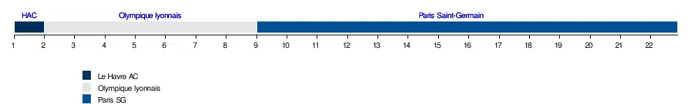 | Paris SG | 3 | 2 | 2 | 2 | 2 | 2 | 2 | 2 | 1 | 1 | 1 | 1 | 1 | 1 | 1 | 1 | 1 | 1 | 1 | 1 | 1 | 1 | 14 | |