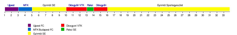 | Diósgyőri VTK | Miskolc | 2011 | 9 | DVTK Stadion | 11 398 | |