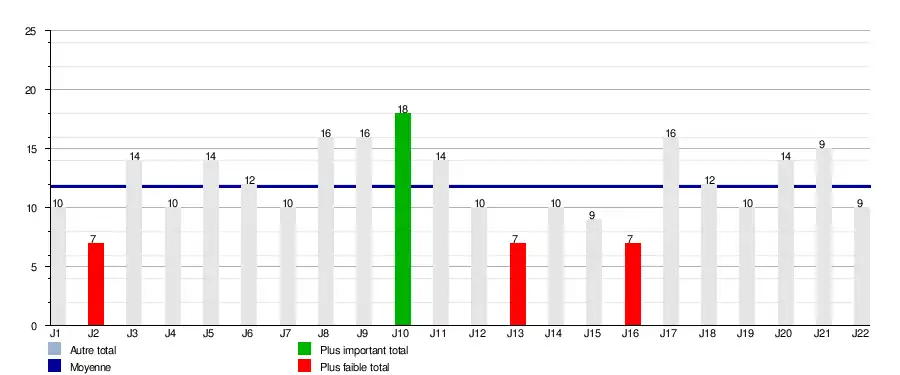 261 buts marqués en 22 journées, soit 11.86 buts / journées
