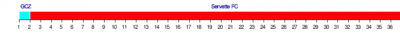 | Thoune | 6 | 2 | 7 | 3 | 6 | 6 | 7 | 6 | 6 | 6 | 6 | 6 | 6 | 6 | 7 | 9 | 9 | 8 | 8 | 8 | 7 | 7 | 8 | 8 | 7 | 7 | 6 | 6 | 6 | 6 | 7 | 6 | 6 | 5 | 5 | 5 | 0 | 0 |