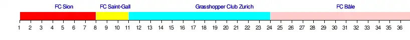 | GC Zurich | 10 | 5 | 6 | 6 | 5 | 4 | 3 | 2 | 2 | 2 | 1 | 1 | 1 | 1 | 1 | 1 | 1 | 1 | 1 | 1 | 1 | 1 | 1 | 2 | 2 | 2 | 2 | 2 | 2 | 2 | 2 | 2 | 2 | 2 | 2 | 2 | 13 | 1 |