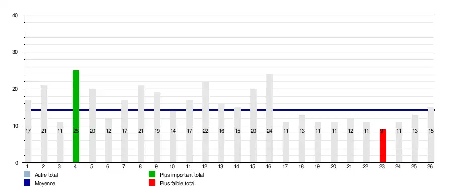 4 cartons rouges (en moyenne : 0.15 / journée, 0.02 / match)