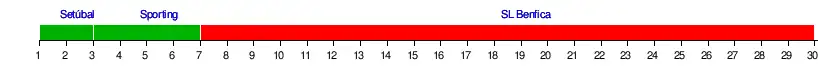 | Benfica | 4 | 7 | 3 | 2 | 2 | 2 | 1 | 1 | 1 | 1 | 1 | 1 | 1 | 1 | 1 | 1 | 1 | 1 | 1 | 1 | 1 | 1 | 1 | 1 | 1 | 1 | 1 | 1 | 1 | 1 |