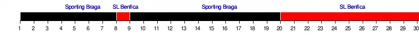 | 1 | Benfica | 76 | 30 | 2 | +58 |