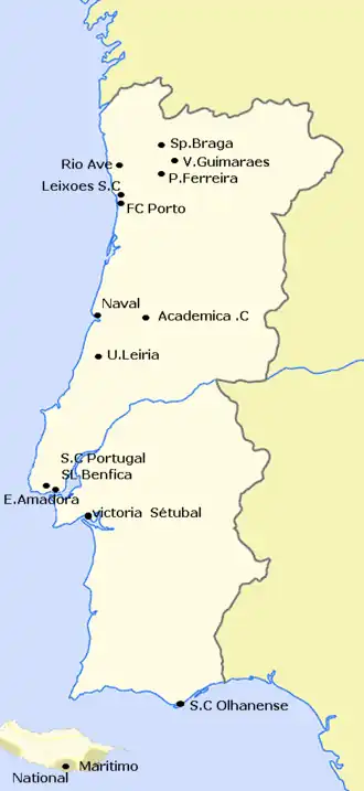 | Vitória Setubal | 14 | Estádio do Bonfim | 21 530 | Setúbal |