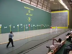 - Mur à gauche d'Hossegor: construit en 4 mois et demi[3] spécialement pour ces championnats, il est inauguré la veille de l'ouverture. D'une capacité de 2052 places, c'est le premier Jaï-alaï en France. Il accueille les compétitions de cesta punta et pala larga.