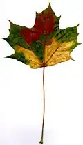 - ↑ (en) Simcha Lev-Yadun, Jarmo K. Holopainen, « Why red-dominated autumn leaves in America and yellow-dominated autumn leaves in Northern Europe? », New Phytologist, vol. 183, no 3, , p. 506–512 (ISSN 0028-646X, DOI 10.1111/j.1469-8137.2009.02904.x)