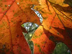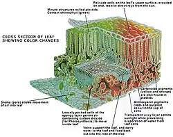 Durant les mois d'automne, des arbres feuillus et des fougères connaissent un changement de couleur des feuilles et des frondes avant qu'elles ne tombent. Ce changement de couleurs, qui existe chez beaucoup d'arbres des régions tempérées[2], est souvent appelé couleurs automnales. Il est associé au dernier stade du développement de la feuille, la sénescence qui se caractérise par de véritables bouleversements biochimiques.