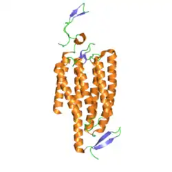 - ↑ « Crystal structure of the channelrhodopsin light-gated cation channel », Nature, vol. 482, no 7385, , p. 369–374 (PMID 22266941, PMCID 4160518, DOI 10.1038/nature10870, Bibcode 2012Natur.482..369K)
