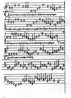 La chanson polyphonique néerlandaise, comme la chanson polyphonique française, est constituée de deux sous-répertoires. D'une part le répertoire spirituel, riche d’environ 450 Souterliedekens composés par Jacob Clemens non Papa, Gerardus Mes ou Cornelis Boscoop notamment, qui ont fait l'objet de plusieurs éditions au XVIe siècle. D'autre part le répertoire profane, riche d'environ 490 chansons polyphoniques[1] qui courent du XVe au XVIe siècle. Ces deux sous-répertoires ont en commun la nécessaire adaptation du rythme de la musique aux mètres de la langue néerlandaise.