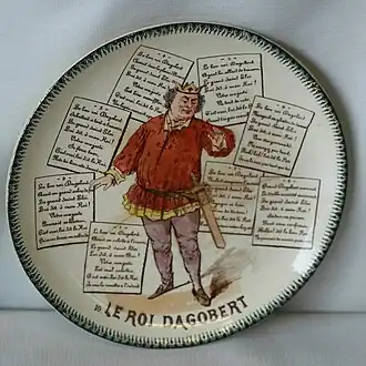 Sous le règne du roi Louis XVI, la chansonnette Le Bon Roi Dagobert se met à trotter dans la tête des gens : « Le bon roi Dagobert a mis sa culotte à l'envers... ». On a prétendu[Qui ?] à tort qu'elle avait été créée à la cour de Kirchheim, alors que celle-ci date plutôt de la Révolution française. Cette chansonnette a rendu encore plus célèbre Dagobert Ier que toutes ses actions politiques ou militaires. Autre conséquence de cette chansonnette : elle a rejeté dans l'ombre Dagobert II, qu'on confond avec son grand-père. Cette chansonnette a été écrite sur un air de danse dit Fanfare du Cerf[1]. Les paroles ont évolué au fil du temps, n'ayant pas pour but de relater une vérité historique mais tient plutôt à se moquer de tel ou tel personnage comme le roi Louis XVI et la reine Marie-Antoinette à travers ce roi plus ancien et moins bien connu[1].