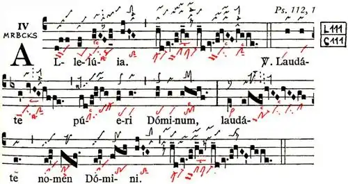 - ↑ Daniel Saulnier, Chant grégorien, p. 103 - 107, 2003