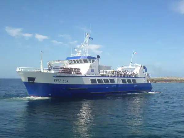 Le navire Enez Sun 3, construit en 1991 au Chantier naval Gléhen de Douarnenez, est exploité par la compagnie Penn-ar-Bed. Il assure la liaison entre l’Île de Sein et le continent depuis le port de Sainte-Evette à Esquibien (Audierne) en condition normale. En cas de météo maritime difficile, le départ de l’Ile de Sein se fait en direction de Douarnenez, sur le quai du Rosmeur, de même pour le retour[5],[6].