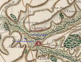La carte de Cassini montre qu'au XVIIIe siècle, Chaourse est une paroisse située sur la rive droite de la Serre.