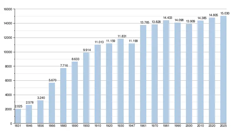 Les chiffres des années 1831 à 1970 tiennent compte des chiffres des anciennes communes fusionnées.