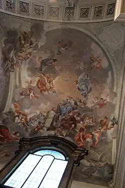 En 1746-1748, les voiles de la croisée d'ogives, peintes par Masolino avec les Quatre évangélistes, sont détruites pour créer un petit dôme, où Vincenzo Meucci peint la Vierge donnant le scapulaire à saint Simon Stock. Sur les tympans, d'autres fresques, en fausse perspective, de Carlo Sacconi, occultent désormais celles de Masolino (Appel des saints Pierre et Paul et Pierre marchant sur les eaux). Les dernières qu'il ait peintes (Reniement de saint Pierre et Nourrissez mes brebis) ne sont plus connues que par leurs sinopie. La fenêtre à meneaux gothique est démantelée et une fenêtre baroque plus grande est installée, causant la destruction de la plupart des fresques dans la partie supérieure du mur du fond. À cette époque, un tabernacle de marbre massif est également dressé pour abriter la Madonna del Popolo, aujourd'hui enlevé.