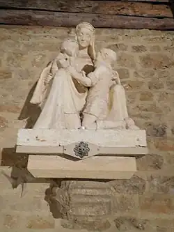 La statue - œuvre d’Henri Briffaut - représente la Vierge Marie assise, avec l’Enfant-Jésus sur le genou droit. Celui-ci fait le signe de la promesse scoute, le regard tourné vers un louveteau se trouvant à genoux aux pieds de Notre-Dame qui, de la main, l’encourage à s’approcher.