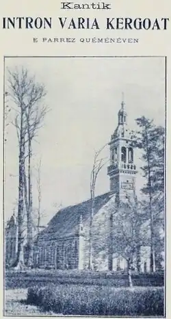 En 1900, Augustin de Croze écrit qu'« au Kergoat, les fidèles, hommes ou femmes, désignés pour porter bannières, reliques, dais ou statues à la procession du Pardon, n'omettent jamais d'offrir quelques cadeaux à la cure pour cette distinction fort recherchée »[8].