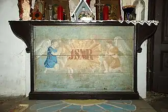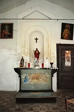 La niche, qui abrite une statue du Christ, est précédée d'un petit autel en bois dont l'antependium (devant d'autel) est orné d'un décor peint figurant deux anges.