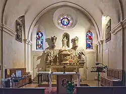 Le mobilier est attribué à l'atelier de la famille Tournié : devant l'autel en bois doré, représentant la naissance de la Vierge et panneaux sculptés aux effigies de sainte Anne et saint Luc.