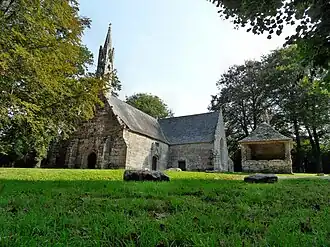 La chapelle est un édifice de la fin du XVe siècle construit en granit et couvert d'ardoises. Elle se compose d'une nef, d'un transept et d'une abside rectangulaire. La façade ouest est surmontée d'un clocheton. Cette façade est percée d'une porte avec anse de panier et accolade. Les grandes fenêtres à meneaux sont de forme ogivale. Les rampants des pignons sont ornés de crochets et d'amortissements sculptés représentant des animaux. Du côté nord, une figure de lutteur pourrait représenter Saint-Cado. Au nord de la nef se trouve la sacristie du XVIe siècle percée d'une fenêtre Renaissance. Près de la chapelle se trouve un petit oratoire du XVIe siècle. Sur les trois faces ouvertes, un mur bahut forme clôture. Un calvaire est adossé à l'oratoire, au-dessus de trois gradins. Le Christ et cinq anges subsistent. Au bas du placître est construite une fontaine du XVe siècle, abritée sous une arcade en anse de panier[1].