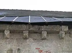 - Nef, côté sud, modillons, corniche de la troisième travée avant restauration ;
