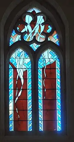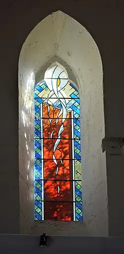 Les vitraux sont l’œuvre du Maître-verrier bordelais Bernard Fournier[6]. Sans évoquer un symbolisme chrétien il a fait un lien avec l'histoire de l'édifice en représentant une bougie qui se consomme et dont la flamme se prolonge.