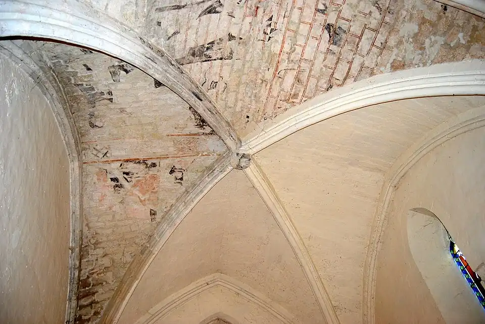 Les peintures murales : Des vestiges de peintures monumentales, datent du XIVe siècle, se trouvent sur deux segments de la voûte du choeur.