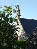 La chapelle est située sur un placître surélevé par rapport à la route et aux anciens chemins, conservant ainsi sa signification première de lieu de rencontre. L'ensemble est formé de blocs de granit non appareillés et présente un plan hybride avec un transept au sud, un chevet débordant à mur plat, et un collatéral au nord séparé du vaisseau central par un pilier de section carrée[1].