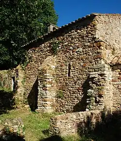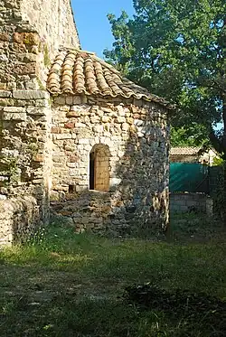 La chapelle possède un petit chevet semi-circulaire composé d'une abside unique édifiée en moellons et couverte de tuiles comme la nef.