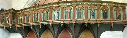 - la face visible de la nef présente les Douze Apôtres ;